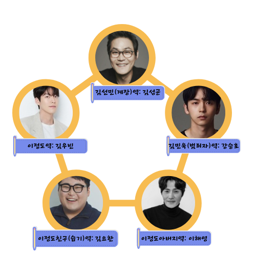 다수의 출연진들이 있지만 이정도친구역으로 나오는 김요한 님은 살인자 o난감에 출연했던 배우이고 강승호 님은 마이데몬에서 노도경역으로 출연했는데 역할이 인상적이었습니다.